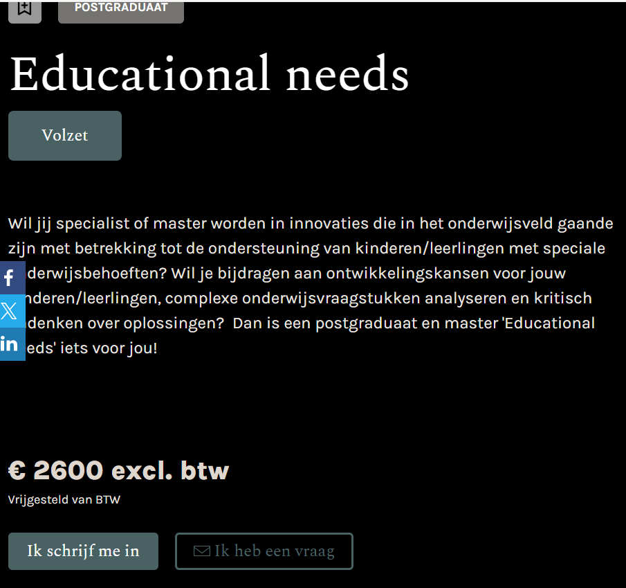 Is de door jouw gekozen postgraduaat opleiding volzet? Dit staat duidelijk onder de titel van het postgraduaat aangegeven.